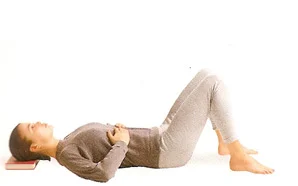Allow your spine to roll down onto the floor until the back of your head is on the support.